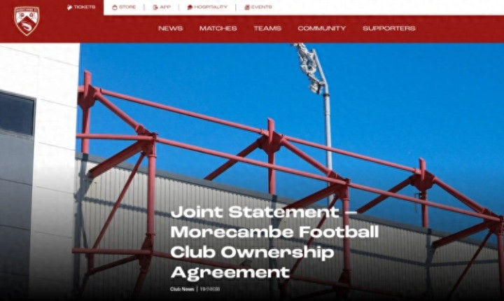 官方: 莫克姆俱乐部的多数股权转让已经达成协议