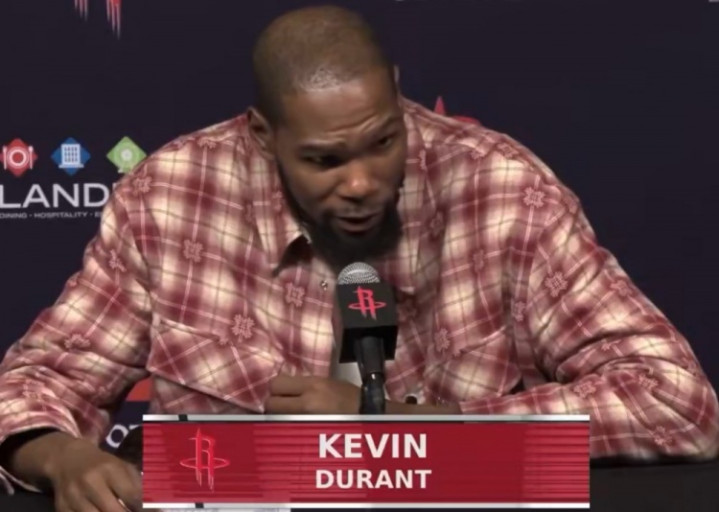 直播吧11月13日讯NBA常规赛,火箭135-112战胜奇才。赛后杜兰特接受了采访。