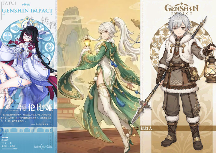 最后就是哥伦比娅的立绘图了,该舅舅表示哥伦比娅的立绘姿势与新月神像很像,不过就是其中一条腿的姿势放的更低了!不过什么叫放的很低呢?难道说是一只脚折叠抱膝,一只脚垂下去?总之,在今晚的6.3解包中大家就能看到这三位角色的完整版立绘了,到时我也会第一时间告诉大家的哈!