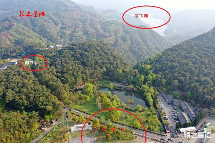 御书亭之下,故名亭下,现有亭下村和亭下湖水库,名称皆来源于御书亭。