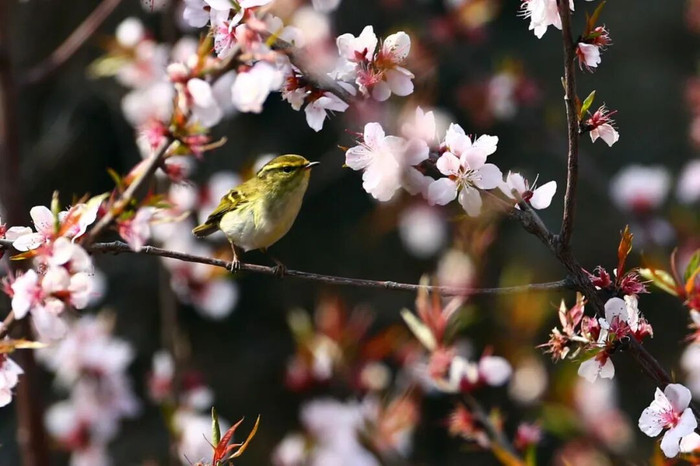 漫山遍野的山桃花粉白如云、缀满枝头;迎春花金黄热烈、如繁星点点;杏花素雅洁白,给古刹又添了几分温婉。随手一拍,皆是无需滤镜的春日美景。