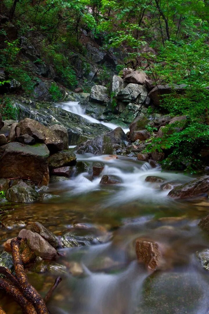 下盘水胜,天成寺一带的飞泉响涧、溅玉喷珠,涓涓溪流绕石而行汇入深潭,掬一捧清泉清凉沁心,惬意无比。