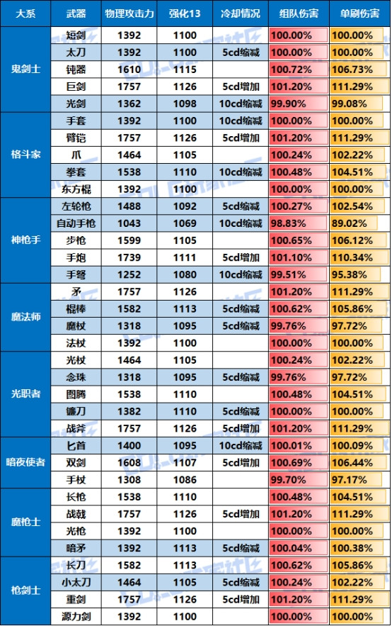 默认武器强化13、组队30000三攻与单刷970三攻计算基准
