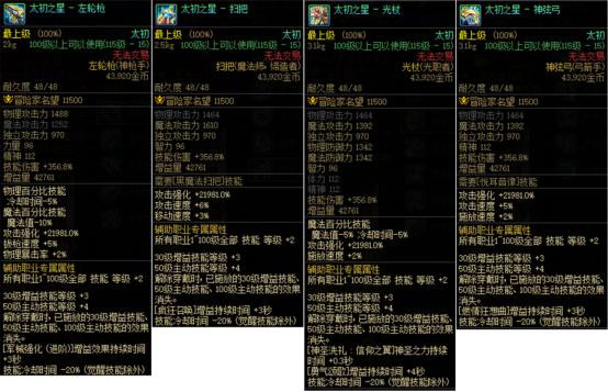 1、协战师的左轮枪、小魔女的扫把、光明骑士的光杖、缪斯的神弦弓