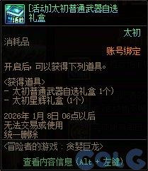 完成累计任务即可获得一个太初普通武器自选礼盒(俗称制式武器)