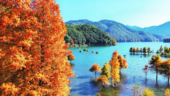 在临海深深的山坳里,居然隐藏着一片让人为之惊叹的红杉林,红遍层林尽染,仿佛是隐秘在江南的喀纳斯。一棵棵红杉树高耸入云,浅红、深红、金红多种色彩交织在一起,倒映在碧波荡漾的河面,如同一幅静止的美丽画卷,地处 牛头山水库 上游,牛头山水库保护区和小芝溪、杨岙溪、毛山羊溪等流域,湿地公园总面积258.29公顷,其中各类湿地面积211.85公顷,湿地率82.02%。